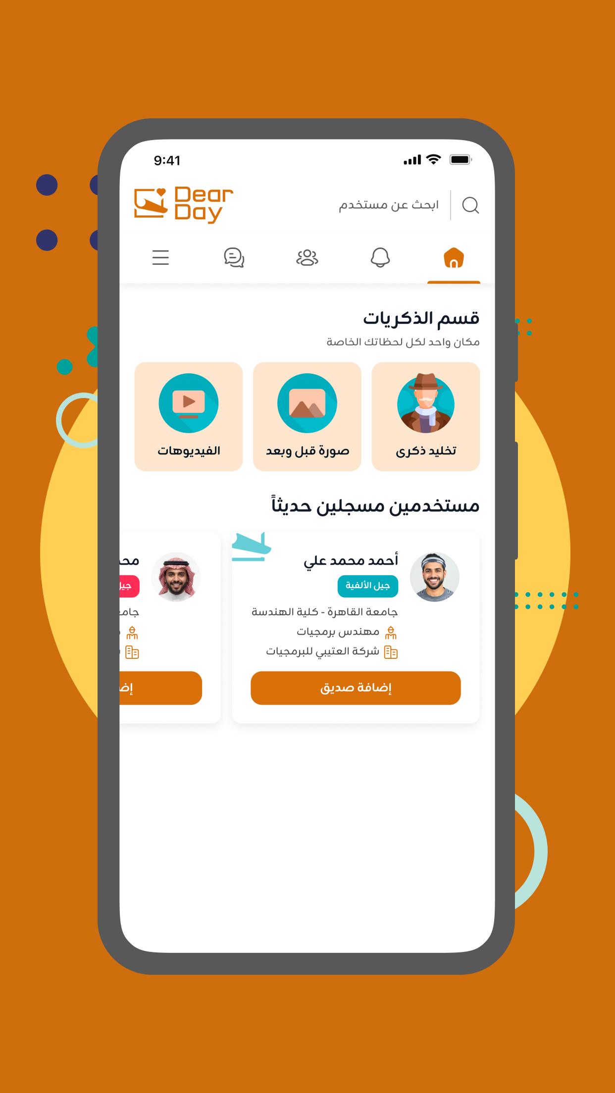 هو تطبيق تواصل اجتماعي مصمم خصيصًا Dear Day للطلاب والخريجين الجامعيين. نهدف إلى ربط الأجيال المختلفة من نفس الجامعة وتسهيل التواصل بينهم، مع توفير منصة لحفظ ومشاركة الذكريات الجامعية الثمينة. تأسس التطبيق في عام 2024 بهدف خلق مجتمع رقمي يجمع الطلاب والخريجين في مكان واحد، حيث يمكنهم البقاء على تواصل دائم، تبادل الخبرات، والاحتفاظ بذكرياتهم الجامعية للأبد..